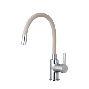 Jednoručna slavina za granitnu sudoperu, linija Freya. Keramički mešač 40 mm. Montira se na sudoperu. Perlator, regulator mlaza vode M22x1, brinox creva G 3/8 – M10x1 za priključak na vodu. Završna obrada u boji granitne sudopere , bež. Materijal – mesing.