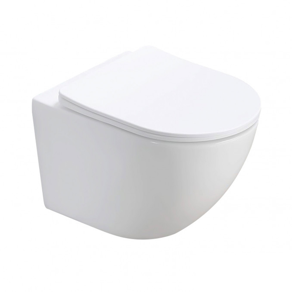 Konzolna WC šolja Perla. Compact rimless bela sa duroplast soft close wc daskom.