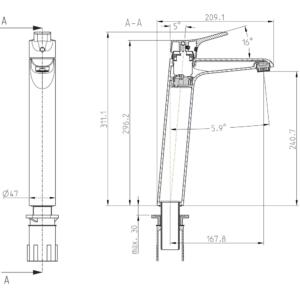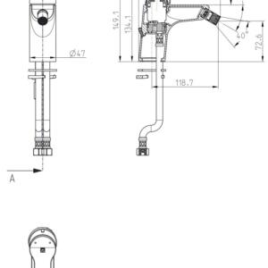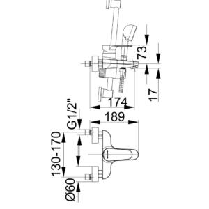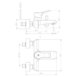 Moderna baterija oštrih linija. Ugradna armatura za kadu.