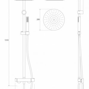 Copen Nook okrugli tuš set u mat crna uključuje bateriju, šipku usponskog tuša, tuš ružu, tuš ručicu i crevo, savršeno kombinovane za moderan izgled i dugotrajnu upotrebu.