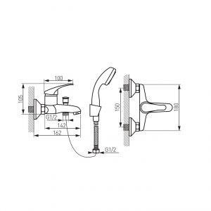 - G1/2 tuš priključak – gornja montaža