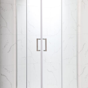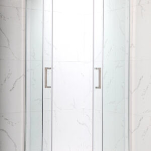 Aluminijumski profili u srebrnoj, sjajnoj završnoj obradi obezbeđuju čvrstoću konstrukcije i lako uklapanje u savremene enterijere. Tu su i elegantne hromirane metalne ručke, koje omogućavaju udobno otvaranje vrata i daju dodatnu notu luksuza. Klizni sistem funkcioniše tiho i precizno, a širina ulaza od 41cm omogućava komforno korišćenje bez kompromisa. Mogućnost ugradnje direktno na pločice, bez potrebe za tuš kadom, čini ovaj model idealnim za savremene adaptacije i renoviranja, gde se često izbegava visoka tuš kada radi postizanja ravnog poda.Tuš kabina 6012 R80 Mat