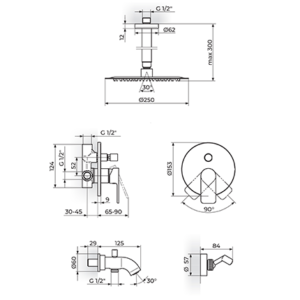 Ugradna baterija sa izlivom, plafonslim tušem i ručnim tušem